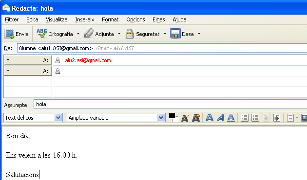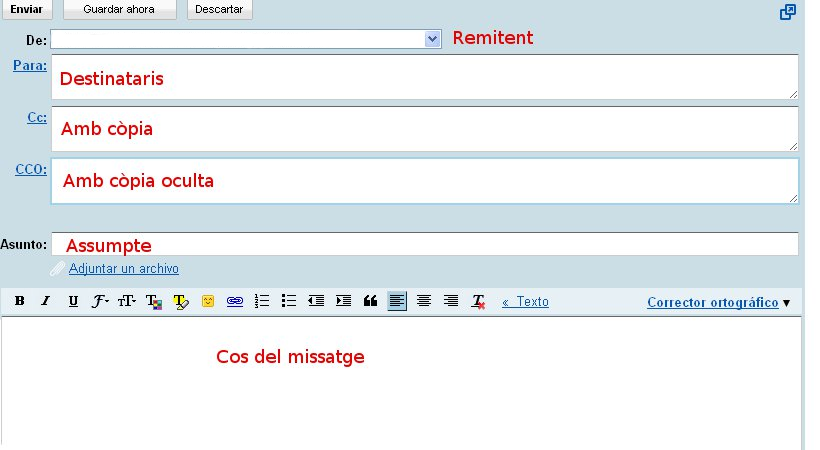 - Destinatari. És l’adreça o adreces dels qui rebran el missatge.