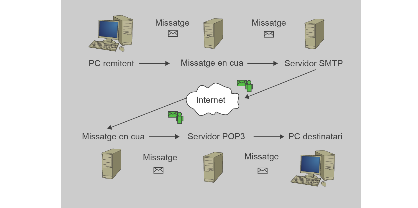 El procés de transmissió de correu electrònic es pot veure en la figura.