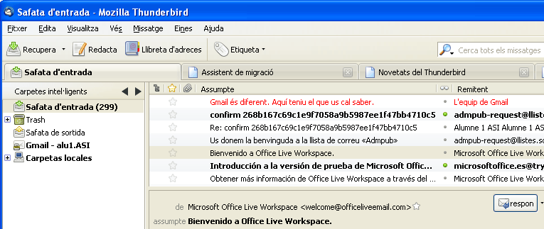 Com podeu veure en la figura, la interfície del Thunderbird és força semblant a l’estructura d’altres gestors de correu.
