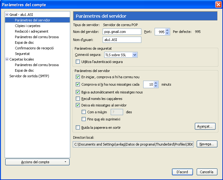 El Thunderbird permet tenir diversos comptes de correu electrònic. Així, cada cop que accedim al gestor de correu, escollirem quin correu volem baixar.
