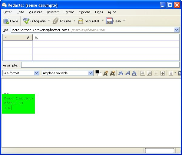 - Cos. És el missatge en si mateix. Molts servidors de correu permeten incloure-hi imatges, incrustar-hi vídeos, animacions, etc.
