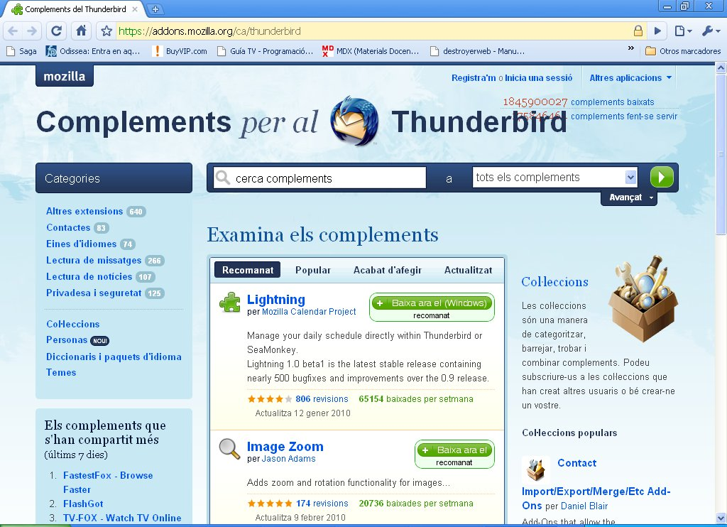 Així, si utilitzem el Thunderbird, inclou una llibreta d’adreces (Eines\Llibreta d’adreces) per emmagatzemar les dades dels nostres contactes i incorpora, a banda de les accions bàsiques, moltes utilitats com ara Importar la llibreta d’adreces d’altres correus i Exportar les dades a un document *.LDIF.