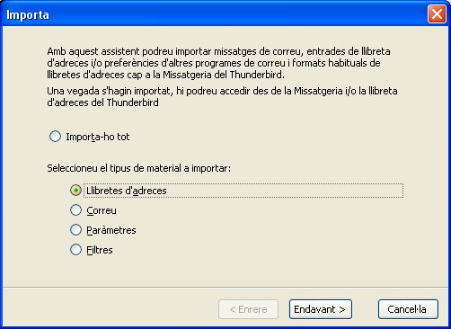 En cas que ja tinguem un gestor de correu instal·lat, podem importar la llibreta d’adreces del gestor. Per fer-ho, hem d’anar a Eines\Importa (figura).