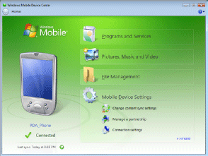 Així, per sincronitzar el PDA amb un ordinador, si s’utilitza el Windows XP, s’ha d’instal·lar el programa Microsoft Active Sync. En el cas del Windows Vista, s’instal·larà el Windows Mobile Device Center.