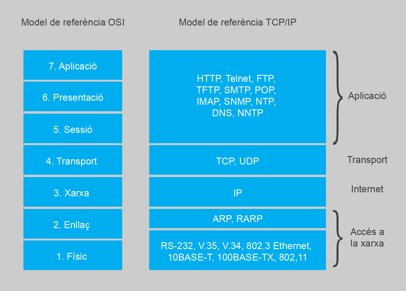 La figura mostra els protocols més comuns segons el nivell al qual pertanyen.