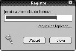 Quan la instal·lació finalitzi i obriu el programa, us sol·licitarà la clau de llicència, que podeu aconseguir si us hi registreu. Per registrar-vos-hi, només cal que entreu a Internet per mitjà de l’enllaç que apareix en la pantalla del registre i aleshores haureu d’emplenar un petit formulari amb les vostres dades. En finalitzar aquest procés obtindreu la llicència corresponent i ja la podreu introduir en la finestra del programa que us l’ha sol·licitat. Ho podeu veure en la figura.