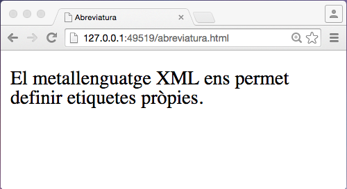 <p> El metallenguatge XML <abbr title="Extensible Markup Language">MB</abbr> ens permet definir etiquetes pròpies. </p>