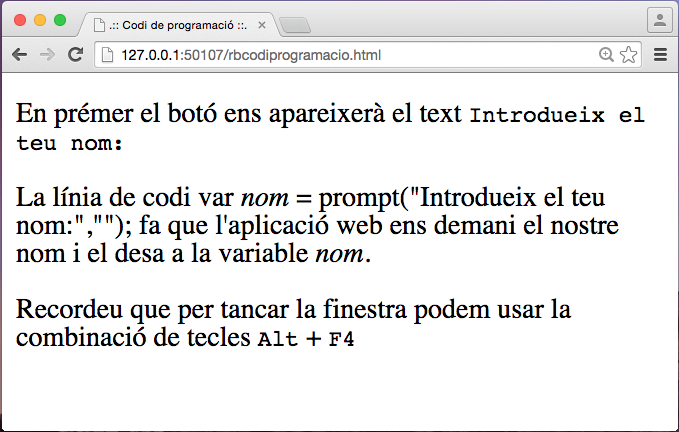 Tot i que l’estudi del llenguatge de programació JavaScript està fora de l’abast d’aquesta unitat, és interessant saber què volen dir aquests atributs. Per exemple, si tenim el següent fragment de codi: