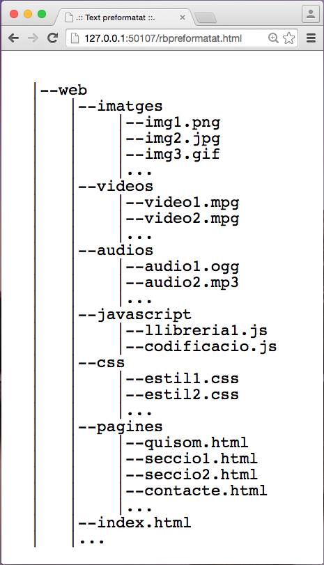 El navegador ens fa un salt de línia cada cop que troba l’etiqueta <br /> tal com podem veure en la figura.