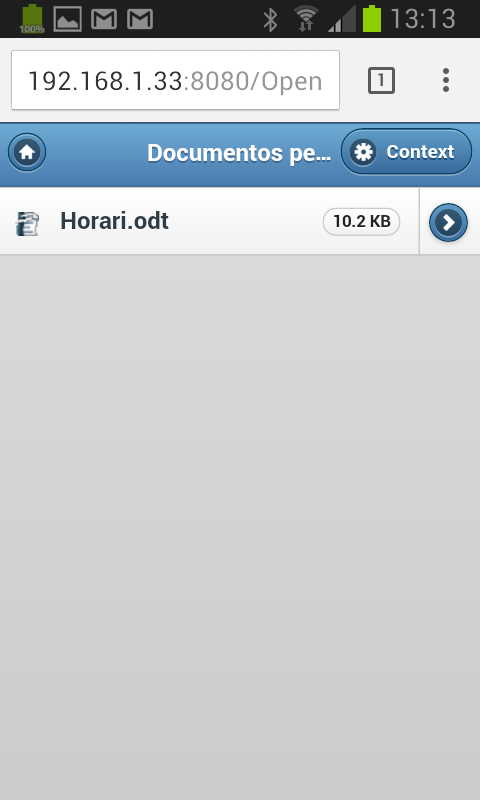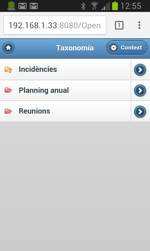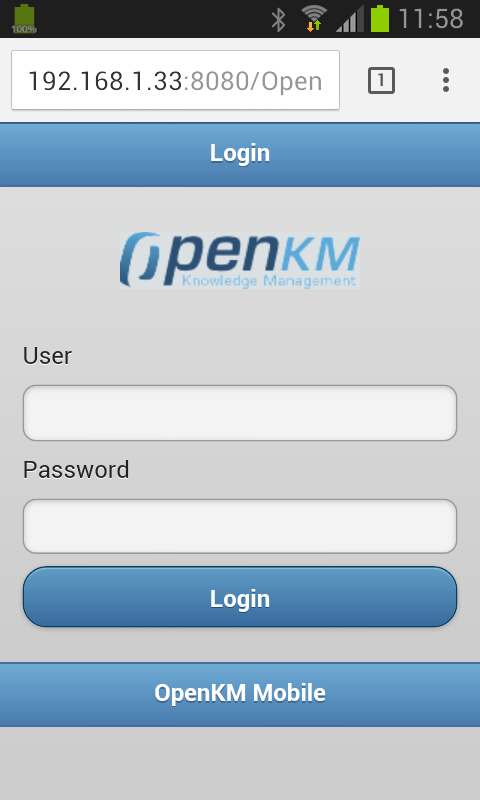 En el cas concret de la instal·lació d’OpenKM en un servidor amb IP 193.168.1.33, l’adreça utilitzada al navegador del telèfon és: