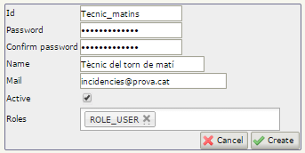 Per crear un nou rol heu de clicar a sobre de la icona de crear un nou rol i introduir el nom que identificarà el rol.