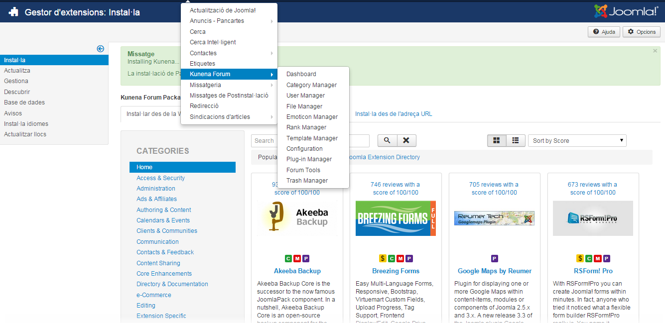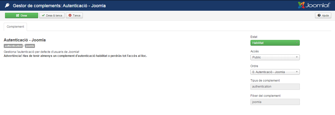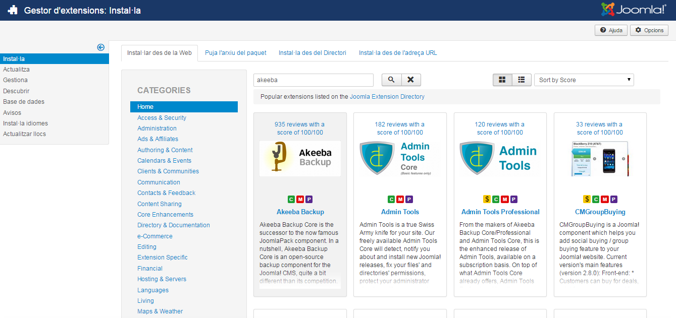 El complement Akeeba (figura) és un complement de Joomla! molt útil per crear i gestionar còpies de seguretat.