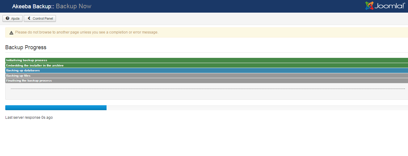És molt important no manipular el Joomla! mentre es realitza la còpia de seguretat, aquesta es podria veure malmesa si navegueu pel back-end.