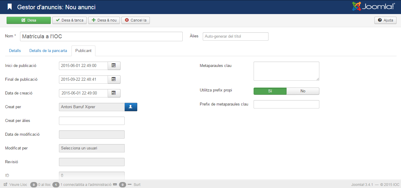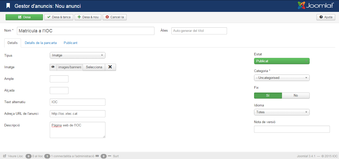 Crear un anunci amb Joomla!
