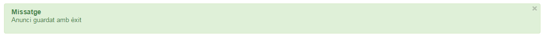 Quan es desa el bàner es torna a la pantalla Gestor d’anuncis/Anuncis i apareix el missatge, tal com es veu a la figura.
