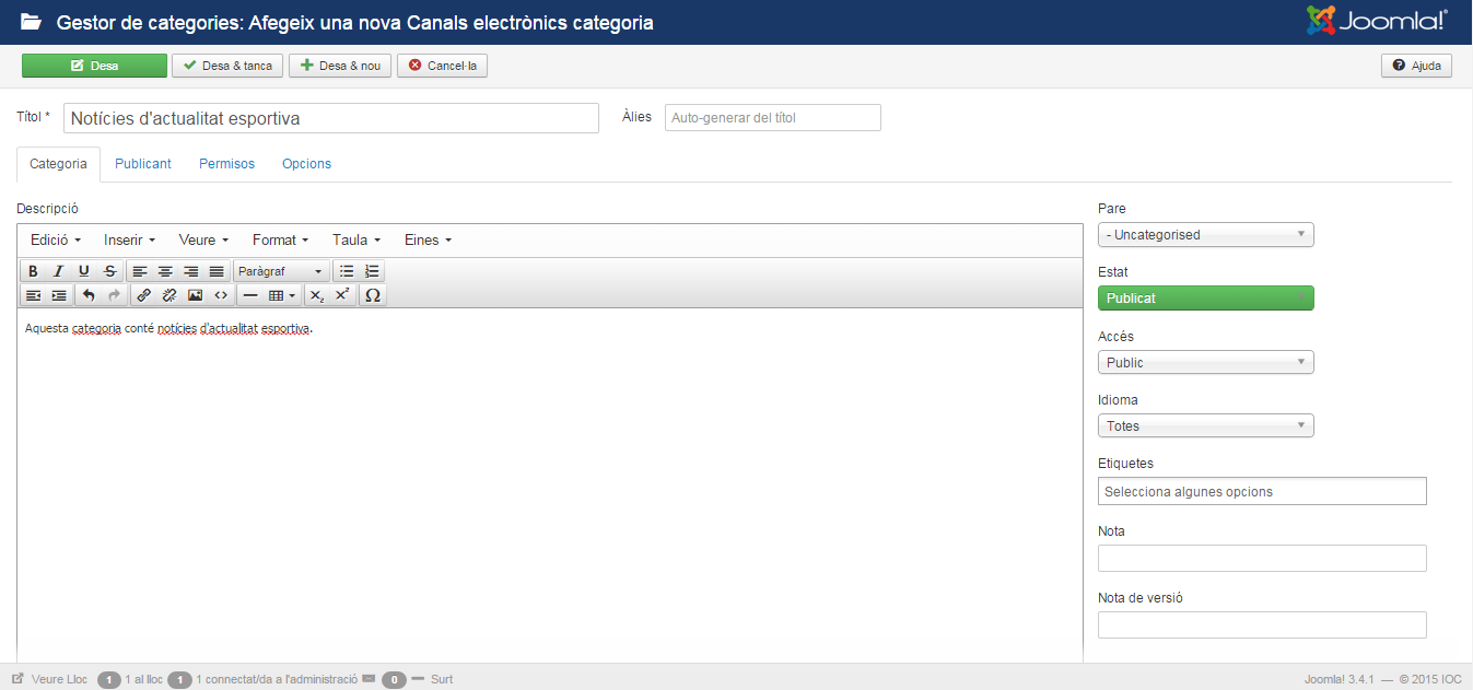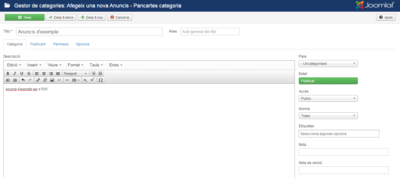 No s’han de confondre les categories del anuncis amb altres categories de Joomla!.