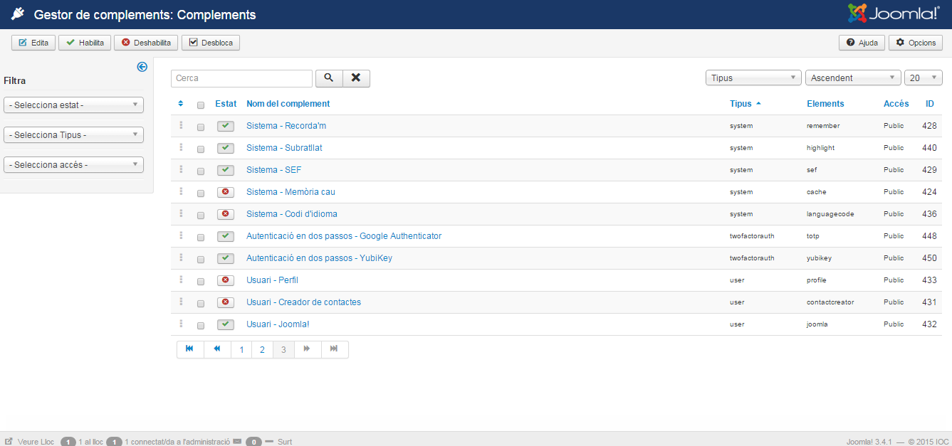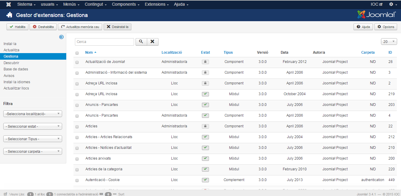 - Comprovar que el sistema compleix els requisits tècnics de la nova versió de Joomla!