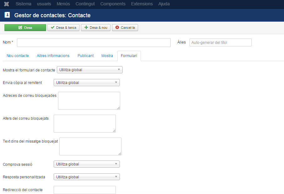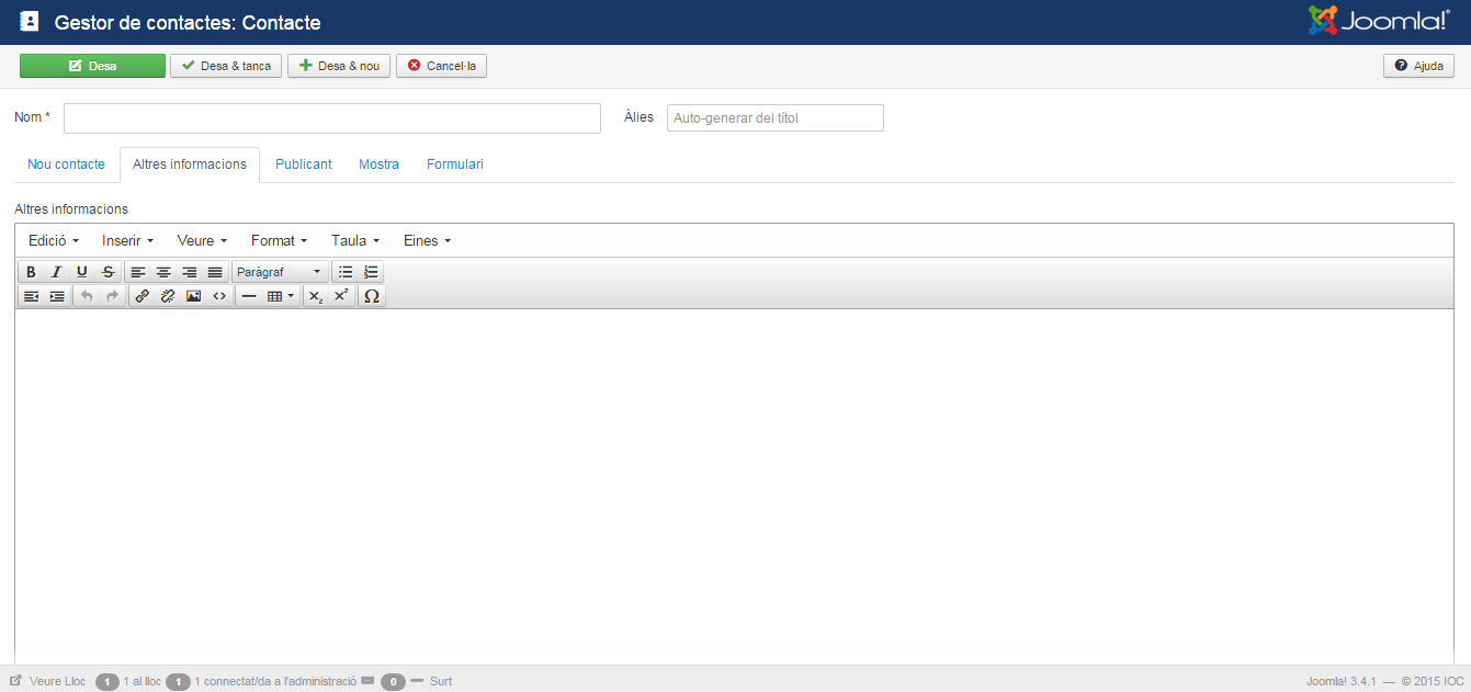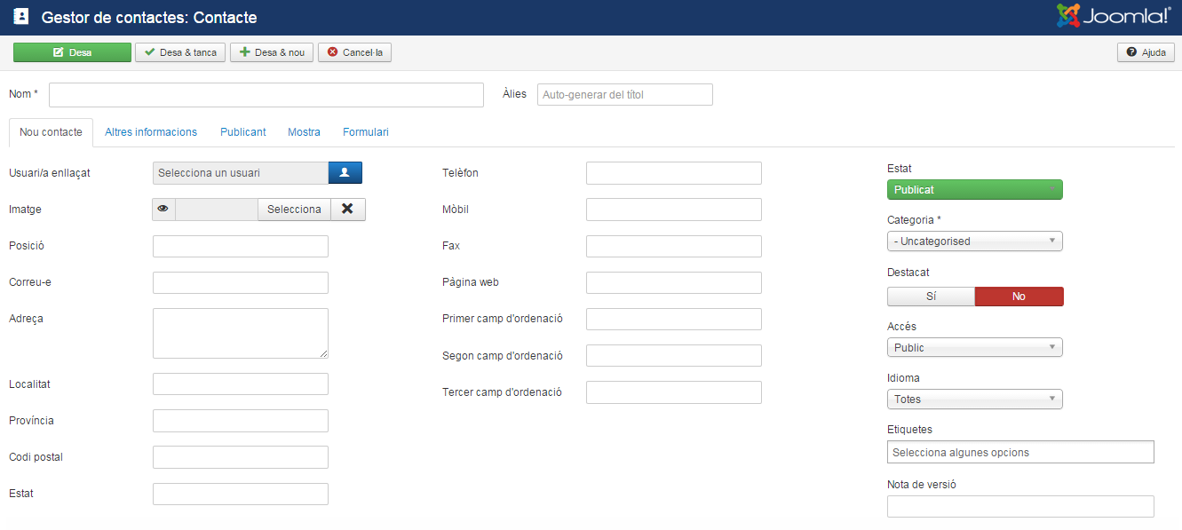 Per treballar amb aquestes dades de contactes, el Joomla! proporciona la gestió de categories i contactes.