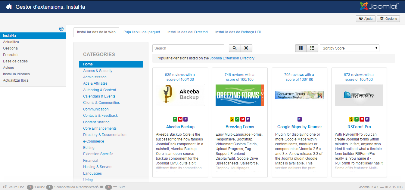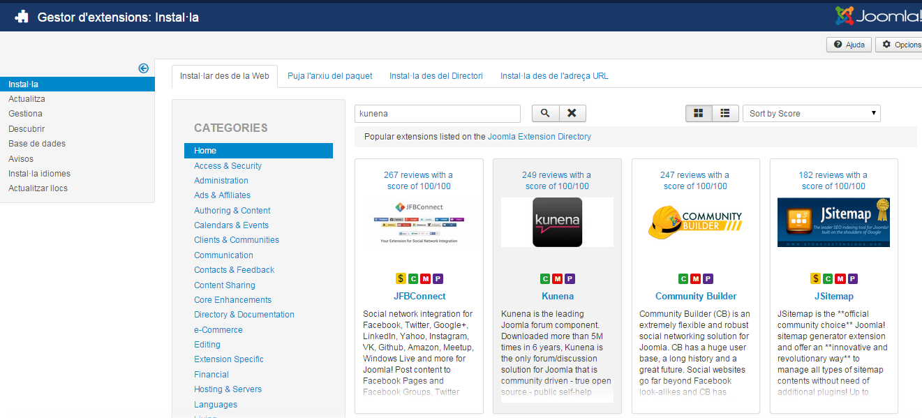Un gestor de continguts ha de tenir extensions que facilitin la seva administració i manteniment.