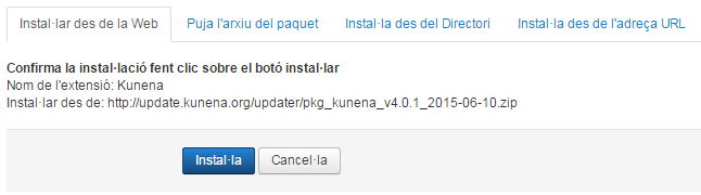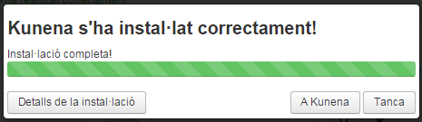 Després cliqueu al botó Instal·lar. Quan finalitzi la instal·lació i tot hagi anat correctament apareixerà el missatge de la figura.