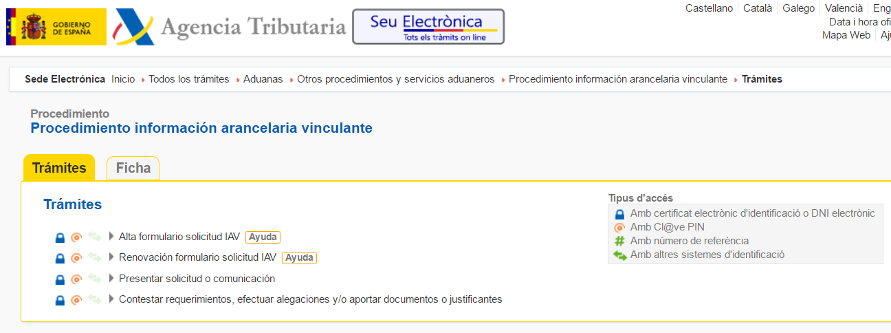 Les empreses espanyoles interessades han de presentar les seves sol·licituds davant la Subdirección General de Política Arancelaria y de Instrumentos de Defensa Comercial de la Dirección General de Comercio e Inversiones del Ministerio de Industria, Turismo y Comercio. L’esmentada sol·licitud ha de contenir la informació necessària per poder fer un estudi que permeti la seva adequada valoració, essent l’empresa sol·licitant responsable davant de l’Administració de la veracitat d’aquesta informació.