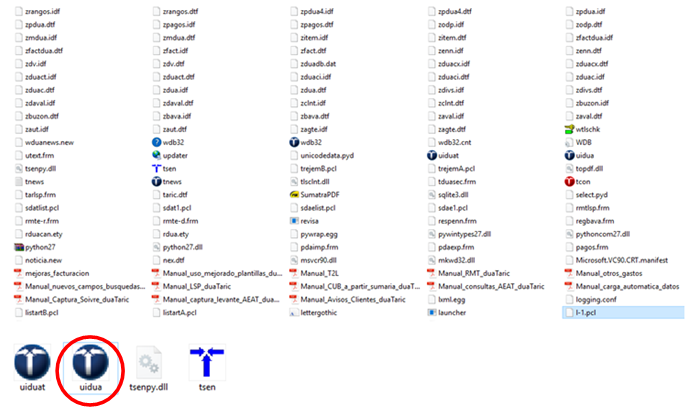 El programa s’instal·la per defecte al disc dur de l’ordinador. A la figura hi podeu veure els fitxers que es descarreguen al disc. Una vegada descarregat el programa, per poder obrir-lo cal executar el fitxer UIDUA (està marcat al final de la figura)