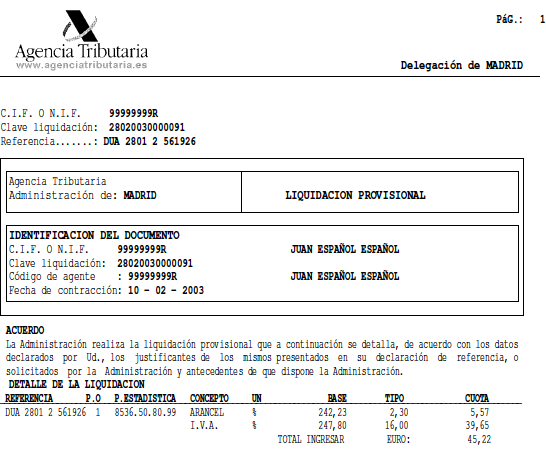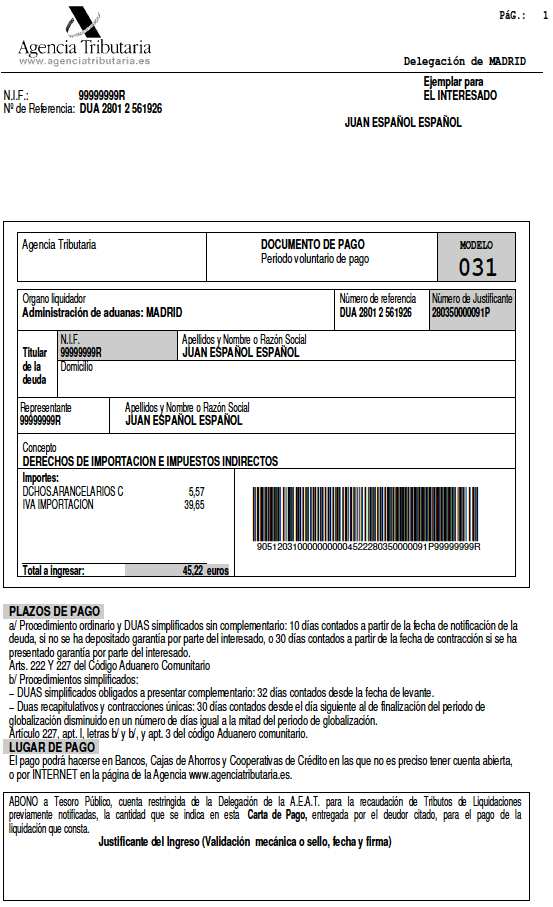 Model de garantia de pagament del deute duaner