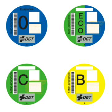 - Senyal V-25. Distintiu ambiental. Identifica la classificació ambiental que el vehicle té en el Registre de Vehicles: 0 emissions, ECO, C i B (figura).