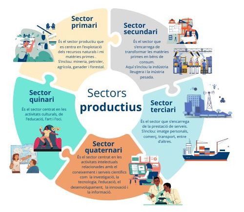El sector productiu és cadascuna de les parts en les quals es divideix l’economia segons els criteris que es poden observar en la figura:
