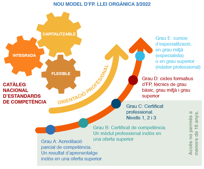 Grau D Nivell 1. Cicle formatiu de grau bàsic. Grau D Nivell 2. Cicle formatiu de grau mitjà. Grau D Nivell 3. Cicle formatiu de grau superior.