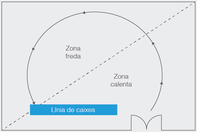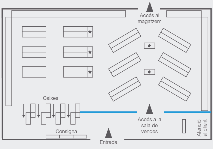- Equilibri entre els objectius del client i els de l’establiment. Trobar l’equilibri entre la comoditat i la facilitat de compra que busca el client i els objectius comercials de l’establiment és una tasca complexa, però cal tenir presents les dues perspectives quan es dissenya el layout.