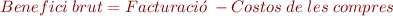 D’aquí es dedueix que per maximitzar el benefici brut de l’empresa, tenim dues palanques: una, maximitzar les vendes (facturació), i l’altra, minimitzar els costos de les compres.