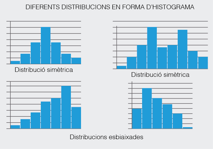 Al diagrama apareix la freqüència a l’eix vertical i a l’eix horitzontal, el rang de valors que pren la variable analitzada. Són útils per comprovar l’efectivitat de canvis introduïts, comparant l’evolució temporal i verificant les especificacions dels límits establerts.