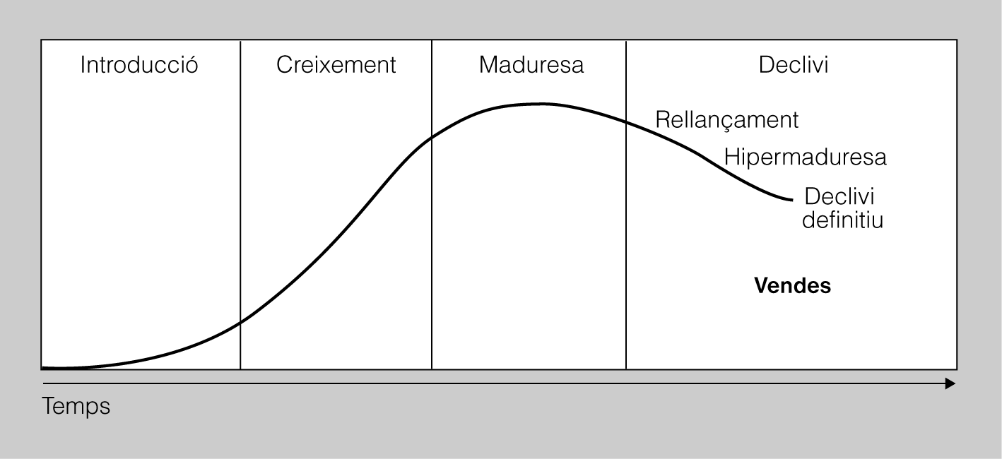 - Declivi o decadència. És l’última fase de la vida del producte i, per tant, la menys rendible per a l’empresa, atès que s’accelera la caiguda de les vendes que va començar en la fase de maduresa. Arribats a aquest punt, l’empresa té tres opcions: retirar-se definitivament del mercat, especialitzar-se en aquells segments que encara són rendibles i mantenir-s’hi el temps que pugui, o intentar rellançar el producte.