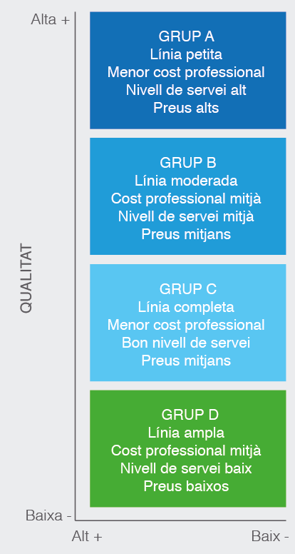 Els productes o marques situats al centre del mapa donen sensació d’equilibri entre les variables qualitat-preu, però al consumidor li costa percebre els productes situats en aquest espai ja que destaquen poc.