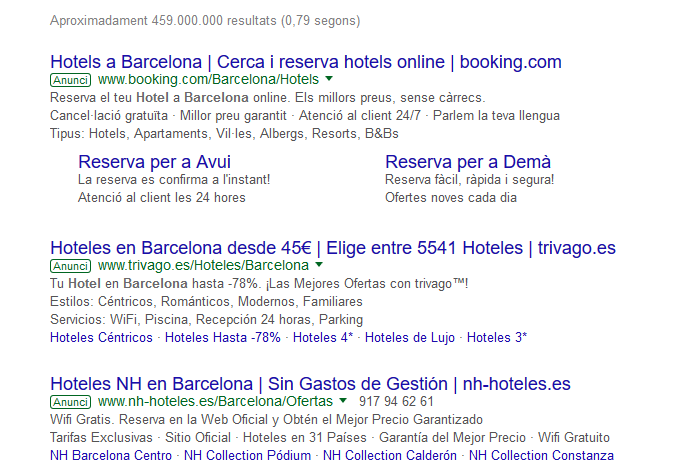 Com veieu a la figura, les tres primeres posicions de la cerca han estat per a accessos als portals de reserva de serveis turístics i oci de Trivago (www.trivago.es), TripAdvisor (www.tripadvisor.es) i Atrápalo (www.atrapalo.com).