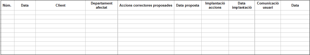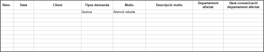 - Efectuar el seguiment i control de les demandes dels clients. En la figura hi podeu veure un exemple de full de registre de queixes i reclamacions.