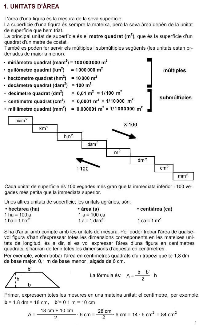 Àrees de figures planes. Exemples de conversions amb unitats d'àrea i càlcul d'àrees de figures planes elementals