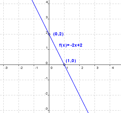Aquesta funció és una recta decreixent que talla l'eix d'abscisses en el punt (1,0) i l'eix d'ordenada en el punt (0,2).