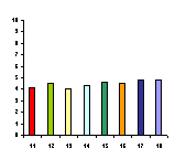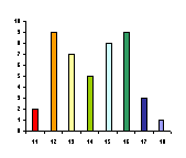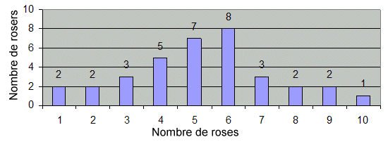 Exemple d'obtenció de la moda i de càlcul de la mitjana: Ens hem entretingut a comptar quantes flors hi ha en cadascun dels rosers d’un jardí. Els resultats són representats en el diagrama següent. Observeu que en aquest diagrama, la freqüència absoluta és el nombre de rosers que tenen un determinat nombre de roses.