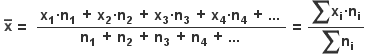 Com que habitualment en estadística, les dades venen agrupades per freqüències, per fer la suma de totes elles, cal fer la suma de cada valor diferent xi multiplicat per la freqüència absoluta respectiva ni: