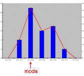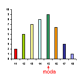 té per classe modal la classe [20,5 , 20,52[. Les modes o classes modals es corresponen amb els màxims del diagrames de barres, polígons de freqüències, histogrames, etc... i amb els sectors més grans dels diagrames de sectors.