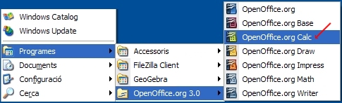 Un cop instal·lat el full de càlcul trobareu una opció al menú Inicia que us permetrà executar-lo: