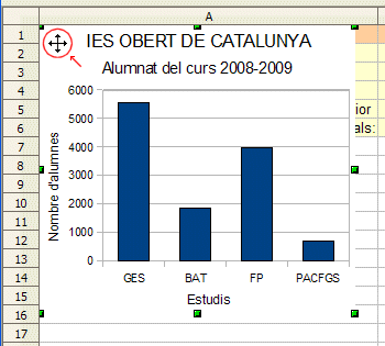 Si premeu sobre Finalitza es tancarà el quadre de diàleg i tindreu acabat el diagrama de barres. Possiblement us passi que el diagrama quedi al damunt de les dades, aleshores, clicant sobre el diagrama (us sortirà el símbol
