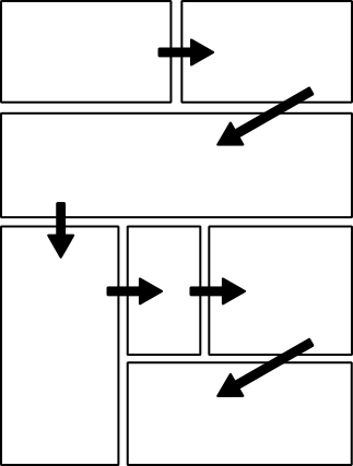 Després d’escollir els moments, l’enquadrament, les imatges més adequades per explicar amb claredat la història, només us queda escollir-ne el flux a través de les vinyetes. És a dir, com acompanyes als lectors des del principi fins al final de la història. Aquest flux pot ser de dues maneres: