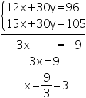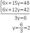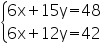 3) Per calcular la x, multipliquem la 1a equació per 6 i la 2a equació per 5, i obtenim: