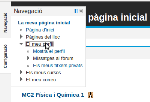 - i l’altra des de la part esquerra a la pestanya Navegació. Hi trobareu una opció anomenada El meu perfil, seleccionant Mostra perfil podreu entrar-hi i visualitzar-lo.