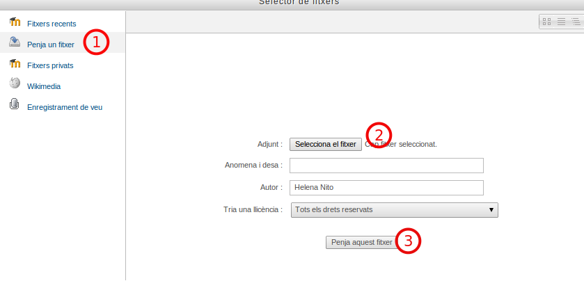 - Finalment caldrà prémer el botó Penja el fitxer (número 3).