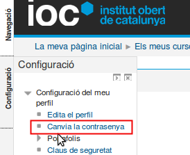 1: Des de la barra lateral esquerra: configuració > Canvia la contrasenya: