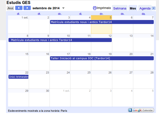 Al calendari Estudis de GES teniu introduïdes les dates de tots els esdeveniments de l’IOC que us afecten: